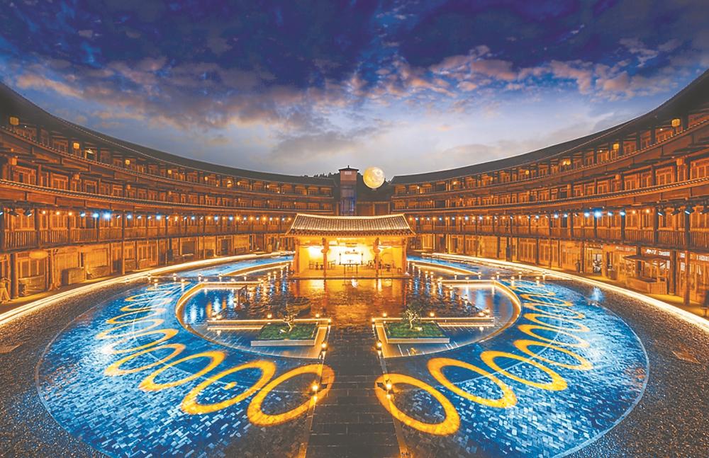 引進(jìn)“天刀”項(xiàng)目是一次突出土樓古色古香特質(zhì)的既謹(jǐn)慎又大膽的嘗試。項(xiàng)目依照“修舊如舊,尊重原貌”的原則,對環(huán)興樓進(jìn)行提升。特地保留了環(huán)興樓火燒的缺口,將其建設(shè)成土樓觀景臺和月亮景觀,保持建筑完整性,留住歷史厚重感。永定區(qū)文旅局副局長樊俊嬌說:“土樓活態(tài)利用需要大膽創(chuàng)新,但一定要保留原汁原味的客家文化?!?/p>