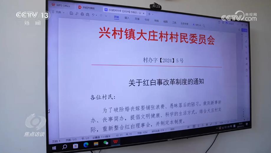 有了標準,怎么執(zhí)行是關(guān)鍵。大莊村通過紅白理事會制度改革,村委會成員全部成為紅白理事會成員,書記擔任會長,以村委會+紅白理事會的方式,細化分工,從男女雙方談彩禮到完婚,全程參與服務、引導。同時,村里還與當?shù)胤ㄔ航Y(jié)合,帶來了“1+1>2”的效果。