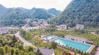 5月25日,走進(jìn)百里杜鵑戛木管理區(qū)大堰村,國家3A級(jí)景區(qū)米底河繞村而過,青山相擁、碧水環(huán)繞、云朵如絮,海恩底度假村內(nèi),錯(cuò)落有致的民居散落于群山間。文化廣場旁的泳池里,不少避暑游客在這里游泳、燒烤、唱歌,好不愜意。