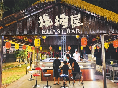 近日,游客在才存共享農(nóng)莊內(nèi)的鄉(xiāng)村酒吧街消費(fèi) 記者 高懿 攝
