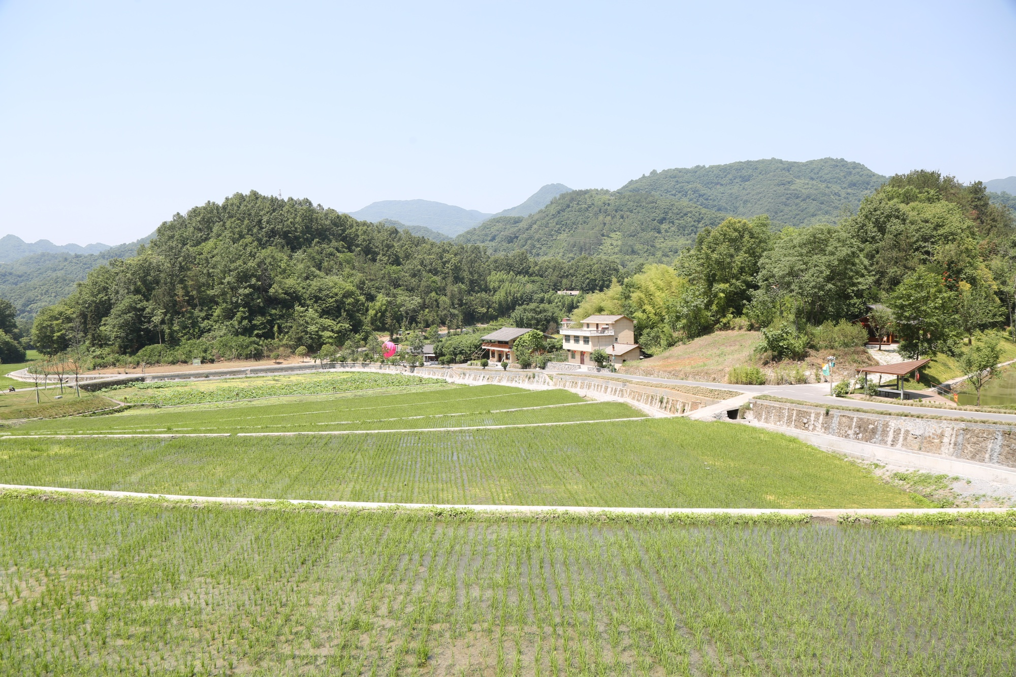 仲夏,朱鹮及伴生鳥(niǎo)白鷺自由翱翔,漠漠荷塘、稻田間荷花盛開(kāi),水稻和蓮藕生長(zhǎng)在富硒地上,自然古村落的“詩(shī)意田園”,近在咫尺。
