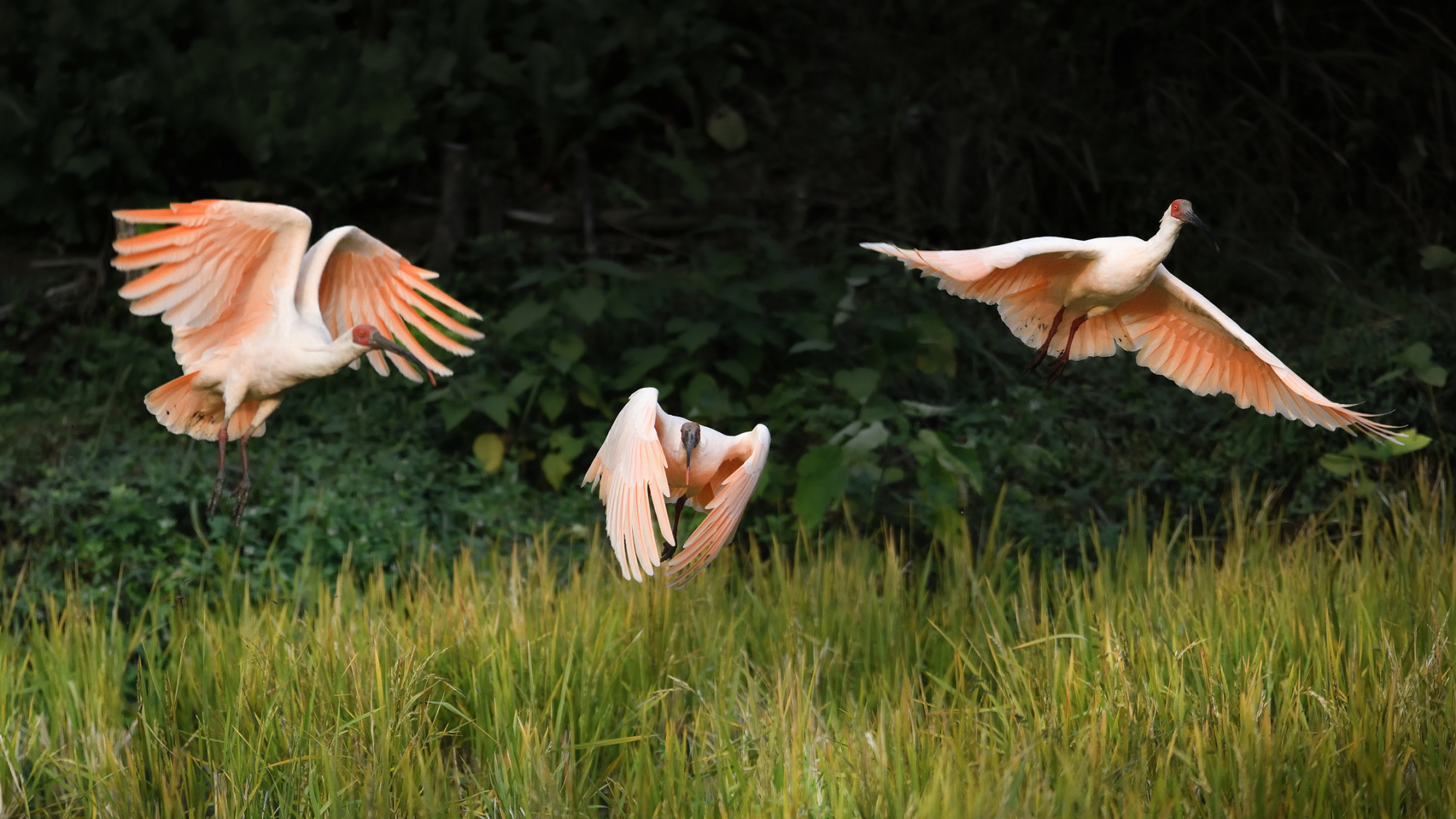 漠漠水田里,國(guó)寶朱鹮展翅飛翔 董長(zhǎng)松 攝