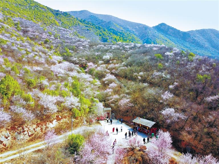 3月,游客在鄭國(guó)渠旅游風(fēng)景區(qū)觀賞桃花(資料照片)