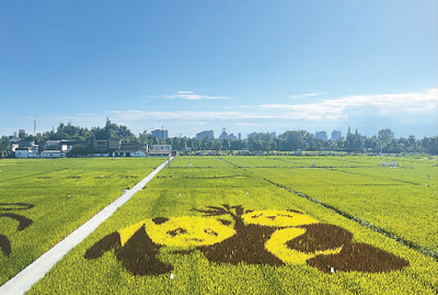 成都市溫江區(qū)和林稻海以異色水稻種出的熊貓稻田畫 記者 朱金宜 攝