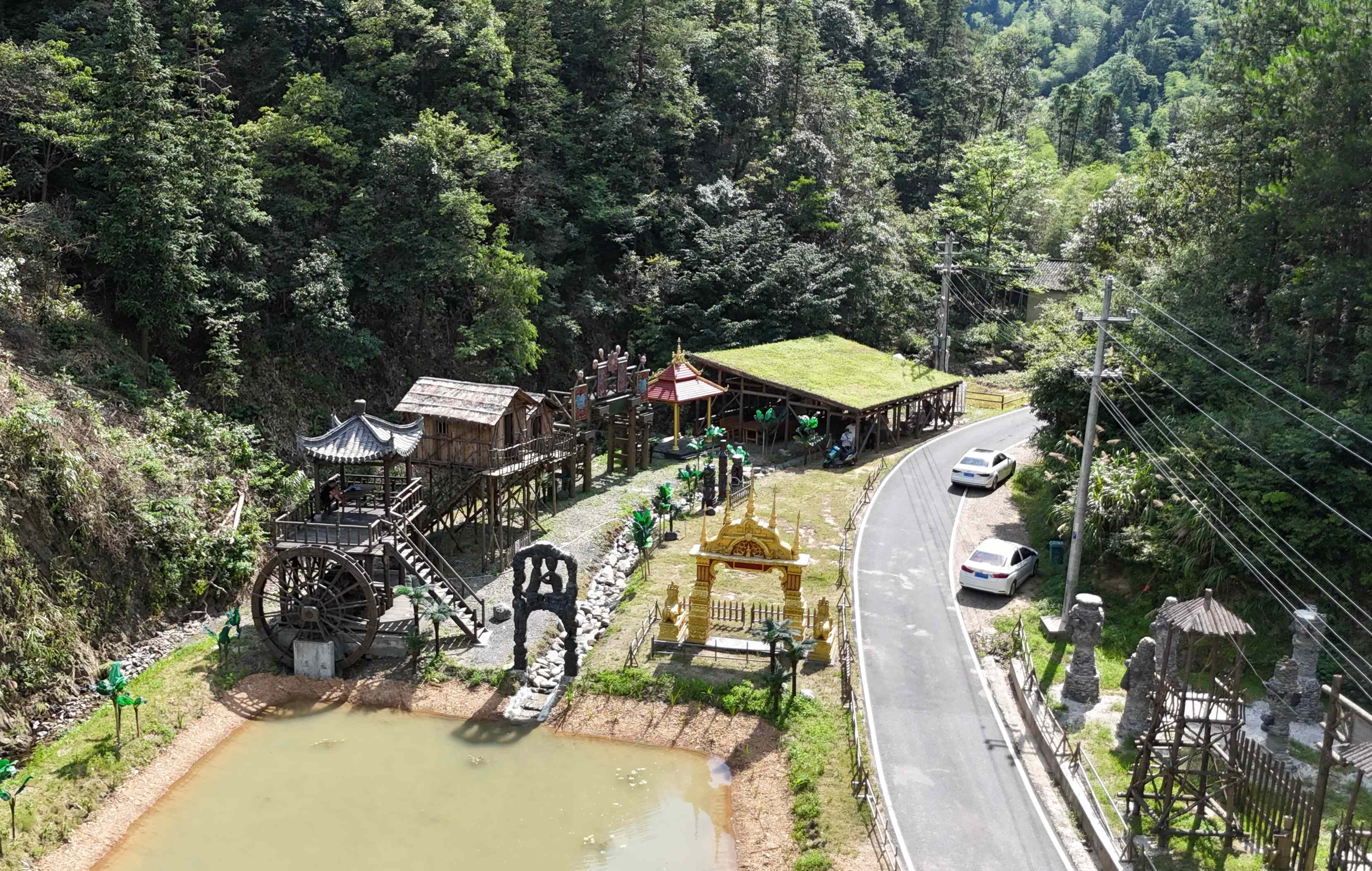 走進紅光村的方坑嶺強鄉(xiāng)富村影視基地,東南亞風(fēng)格建筑和古代宮廷場景仿佛讓人穿越。在這里,不到一年的時間已經(jīng)拍了4部電影和8部短劇,小山村儼然成了“劇工廠”。