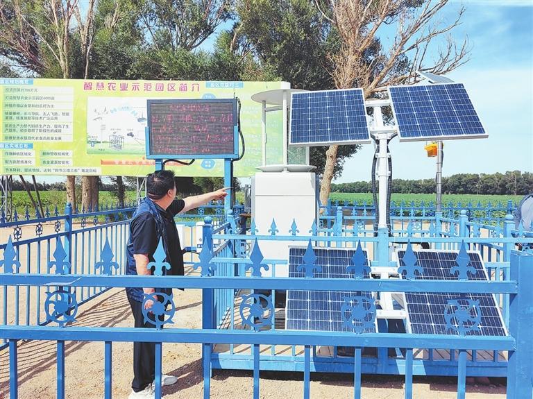 工作人員查看智慧農(nóng)業(yè)監(jiān)測設備 記者 王朝霞