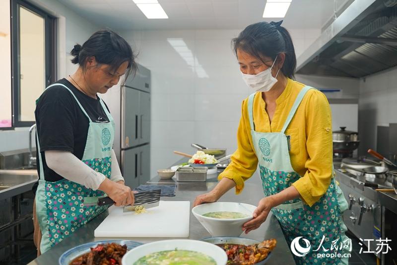姜下村民宿廚房內(nèi),村民正在制作本地美食 郜超 攝