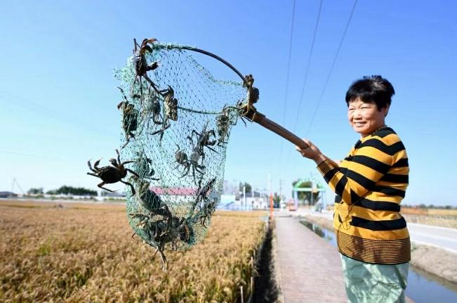 農(nóng)戶在曹妃甸區(qū)第四農(nóng)場開展稻蟹立體種養(yǎng)