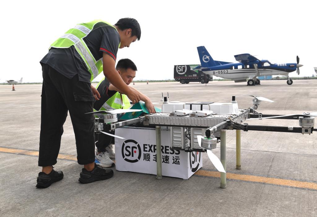 6月28日,工作人員將貴陽特色農(nóng)產(chǎn)品快遞裝進無人機 記者 劉坤 攝