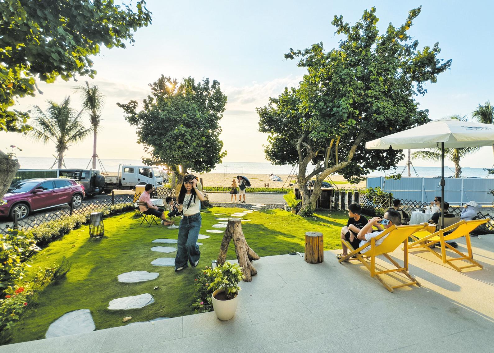 游客在秀英區(qū)西秀鎮(zhèn)榮山寮村漂浮的人民宿享受愜意時光 記者 石中華 攝