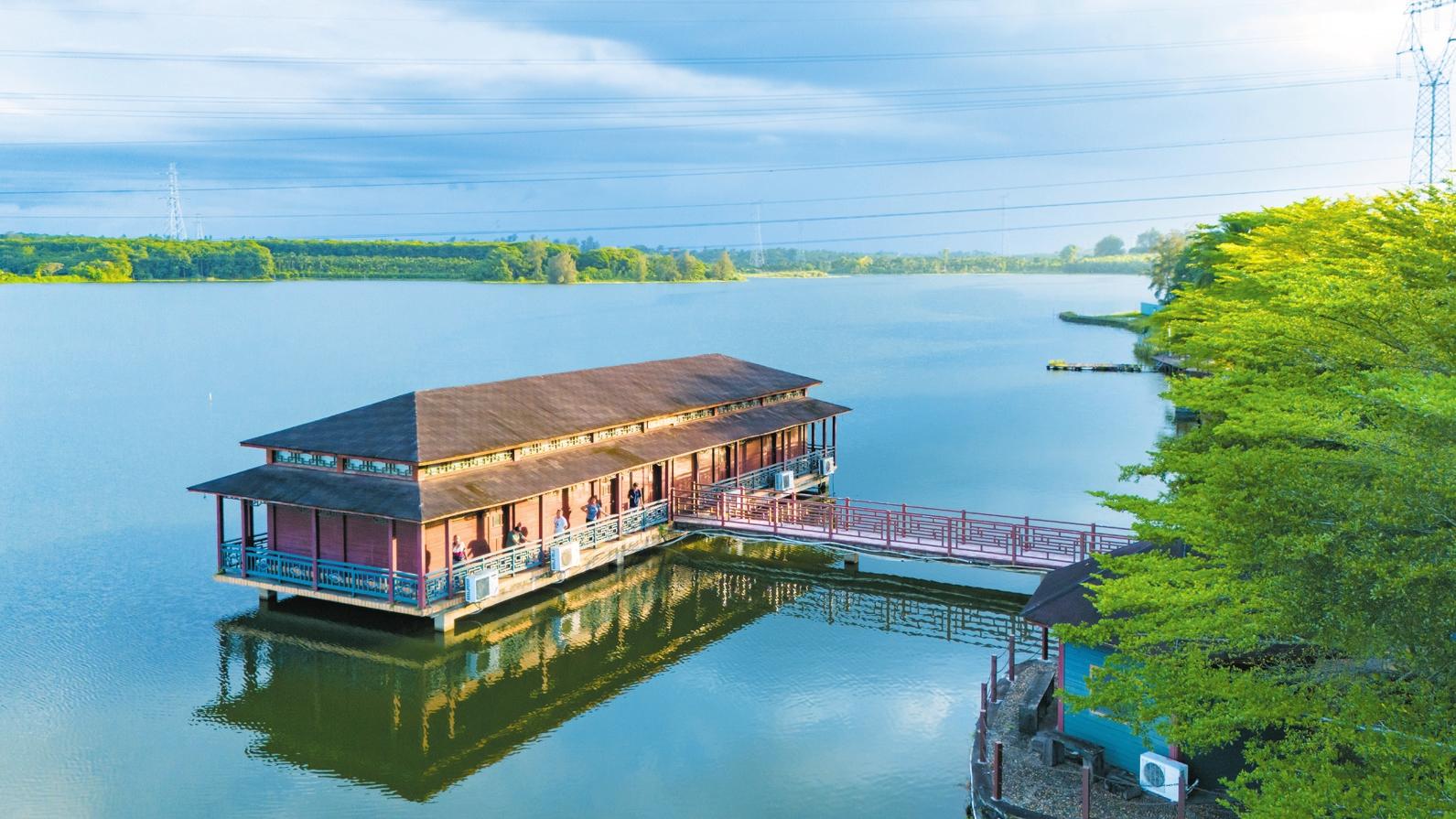24日,記者在瓊山區(qū)紅旗鎮(zhèn)蘇尋三村委會泮邊村泮邊休閑農莊看到,依水而建的長廊宛若玉帶,市民游客正聚在長廊處品茗、釣魚。農莊內,有幾間極具特色的民宿房間,工作人員正為即將到來的度假團隊開展房間打掃服務。