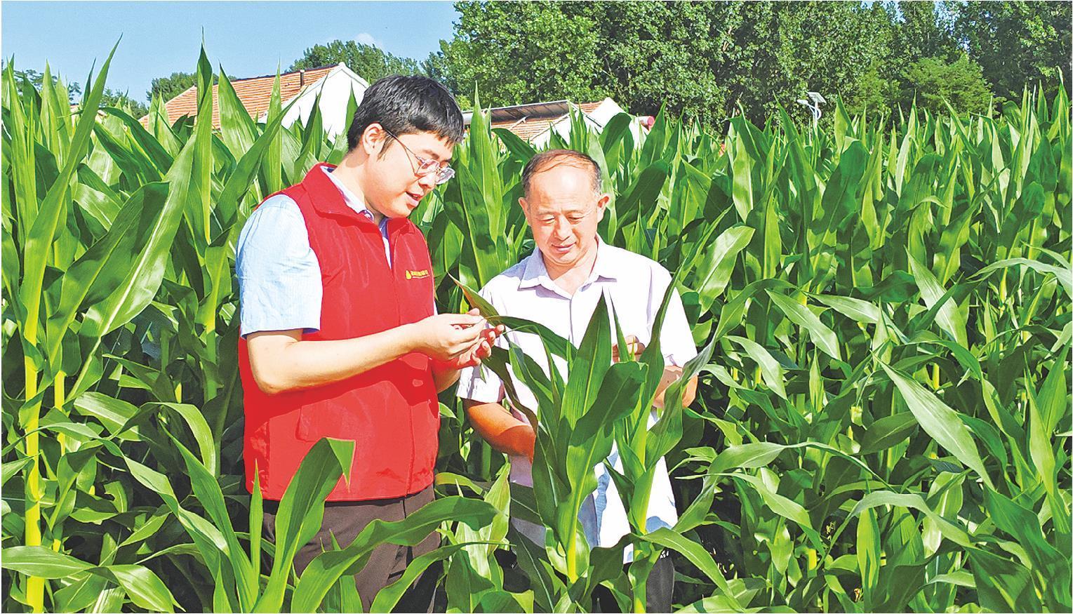 農(nóng)商銀行工作人員到田間地頭了解作物生長狀況