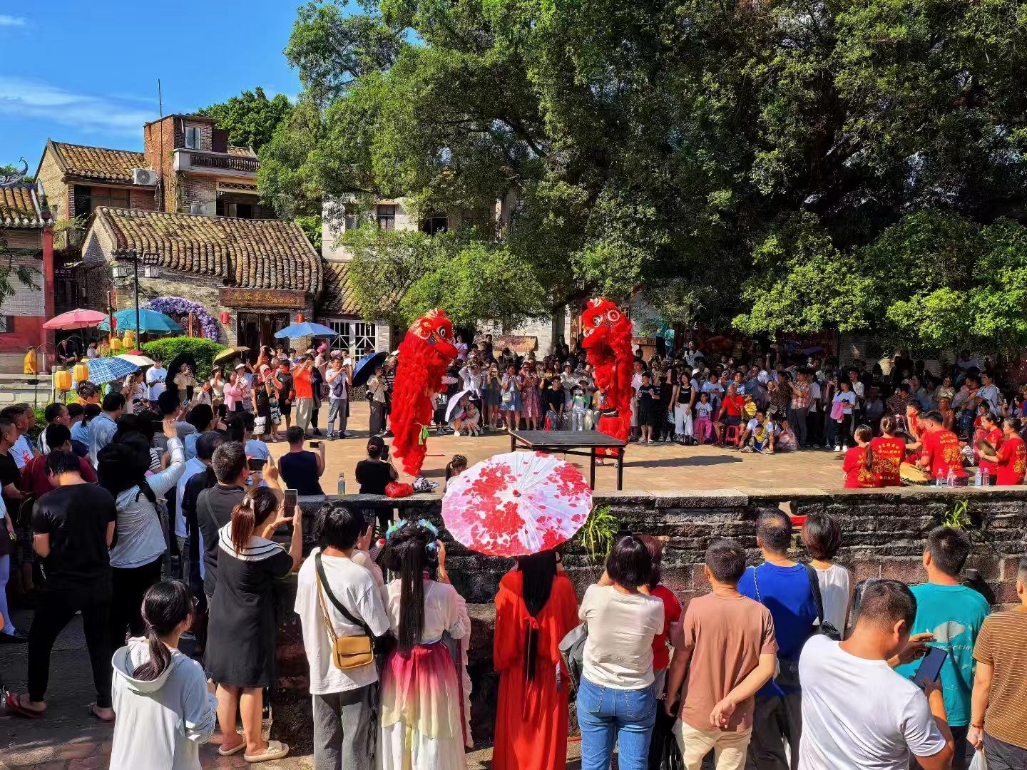 國慶假期,不少游客走進(jìn)廣東省東莞市茶山鎮(zhèn)南社明清古村落,在舞獅、粵劇、太極表演、農(nóng)耕巡游、婚嫁巡游等具有嶺南特色的民俗活動(dòng)中,感受800年南社的悠悠古韻。南社創(chuàng)意公司運(yùn)營總監(jiān)陳玲介紹,國慶期間,南社村的客流量比平日有明顯提升。“這里風(fēng)景優(yōu)美,傳統(tǒng)文化氛圍濃厚,是短途旅行的好選擇?!庇慰腿~先生表示。