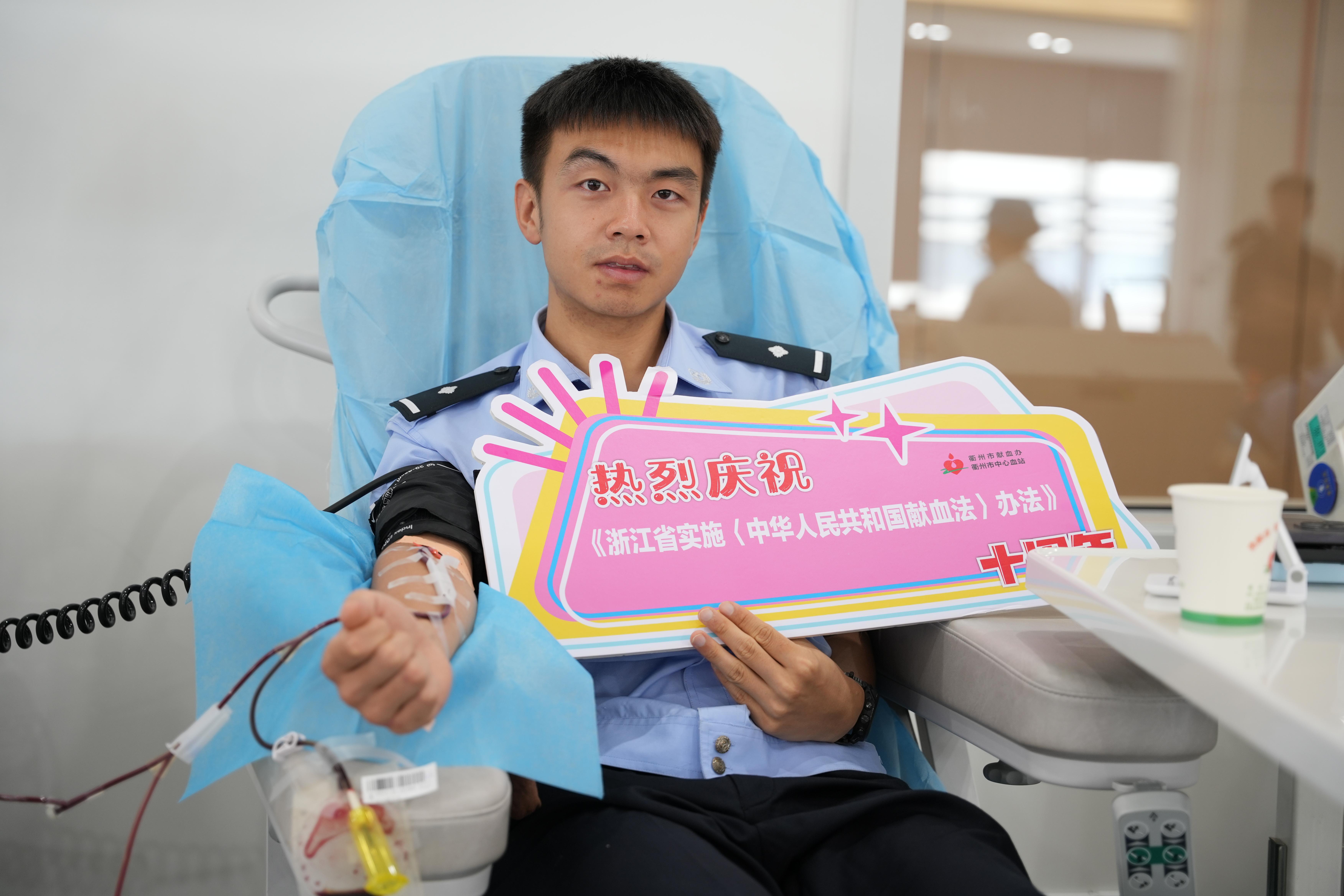 如今,徐垠飛已成為衢州市中心血站的“救火隊長”,每當(dāng)血庫告急,工作人員總會第一時間想到他。無論刮風(fēng)下雨,他總能及時出現(xiàn)在血站,血站里的護(hù)士也被他的行為所感動,徐垠飛笑著說,“作為一名黨員,參加無償獻(xiàn)血我隨叫隨到”。
