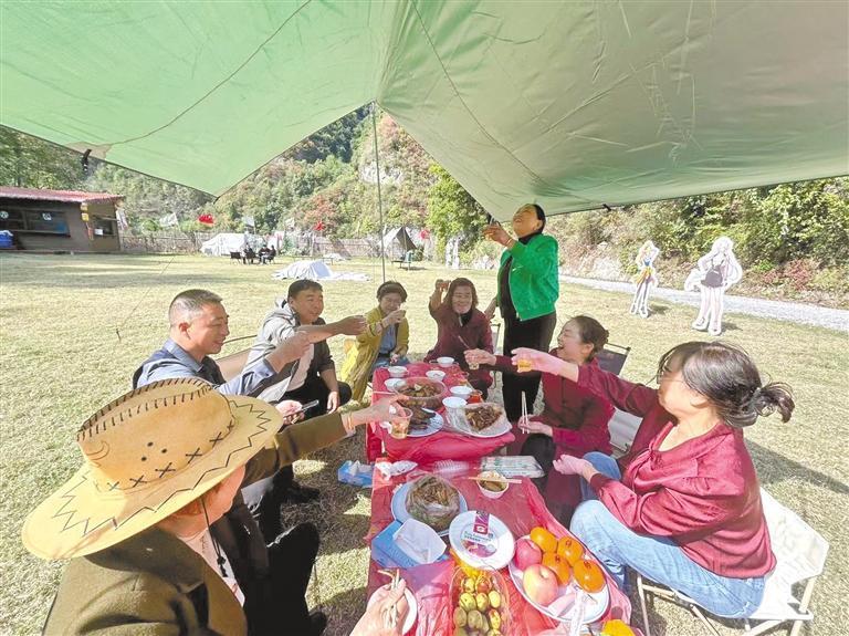 “基地設(shè)有餐飲美食區(qū)、休閑娛樂區(qū)、鄉(xiāng)土文化展示區(qū)、草坪觀影區(qū),為前來(lái)露營(yíng)的游客提供豐富的休閑娛樂體驗(yàn)?!鄙耠[谷露營(yíng)基地投資人雷寶鈞說(shuō)。
