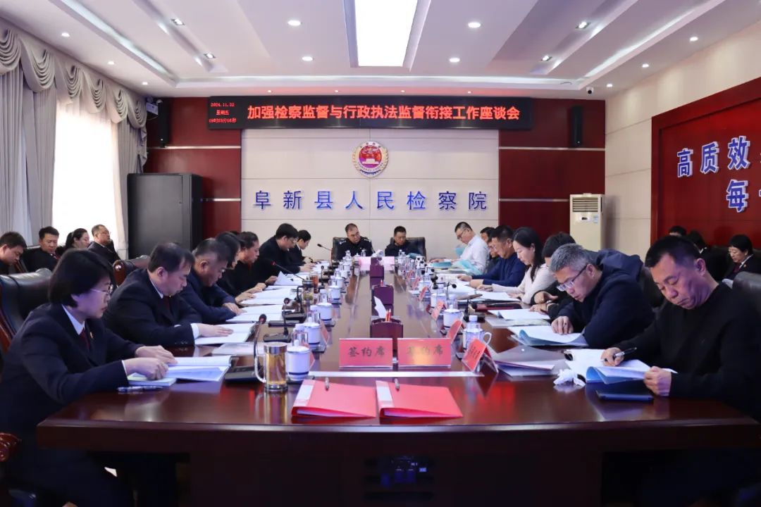 為全面落實(shí)《中共中央關(guān)于加強(qiáng)新時(shí)代檢察機(jī)關(guān)法律監(jiān)督工作的實(shí)施意見》和最高檢《關(guān)于推進(jìn)行刑雙向銜接和行政違法行為監(jiān)督構(gòu)建檢察監(jiān)督與行政執(zhí)法銜接制度的意見》,有效推動(dòng)檢察監(jiān)督與行政執(zhí)法監(jiān)督的銜接配合,助推法治政府建設(shè),11月22日,遼寧省阜新縣人民檢察院與阜新縣司法局聯(lián)合召開了加強(qiáng)檢察監(jiān)督與行政執(zhí)法監(jiān)督銜接工作座談會(huì)??h委常委、副縣長張文遠(yuǎn),縣委常委、政法委書記王立靖參加會(huì)議并講話。縣公安局、縣司法局、縣工業(yè)和信息化局、縣人力資源和社會(huì)保障局、縣住房和城鄉(xiāng)建設(shè)局、縣水利局、縣應(yīng)急管理局、縣林業(yè)和草原局等12家行政單位參加了座談會(huì)。市人民檢察院、縣紀(jì)委監(jiān)委、縣人民法院派員參加了會(huì)議。