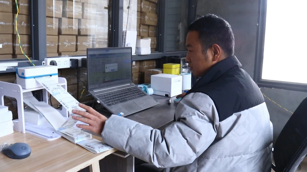 岷縣岷歸人家電子商務(wù)有限責(zé)任公司負(fù)責(zé)人李智軍正在打印訂單(岷縣融媒體中心供圖)