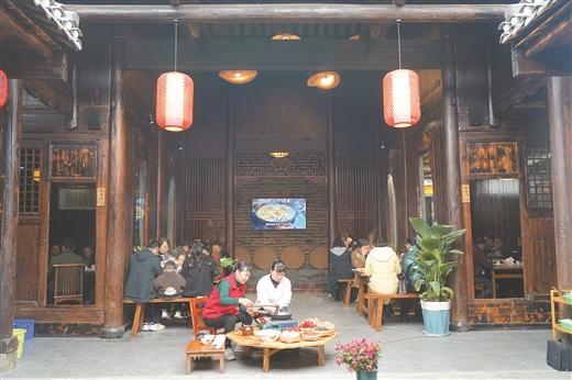 初冬時(shí)節(jié),灌陽(yáng)縣玉溪油茶屋顧客爆滿(mǎn)