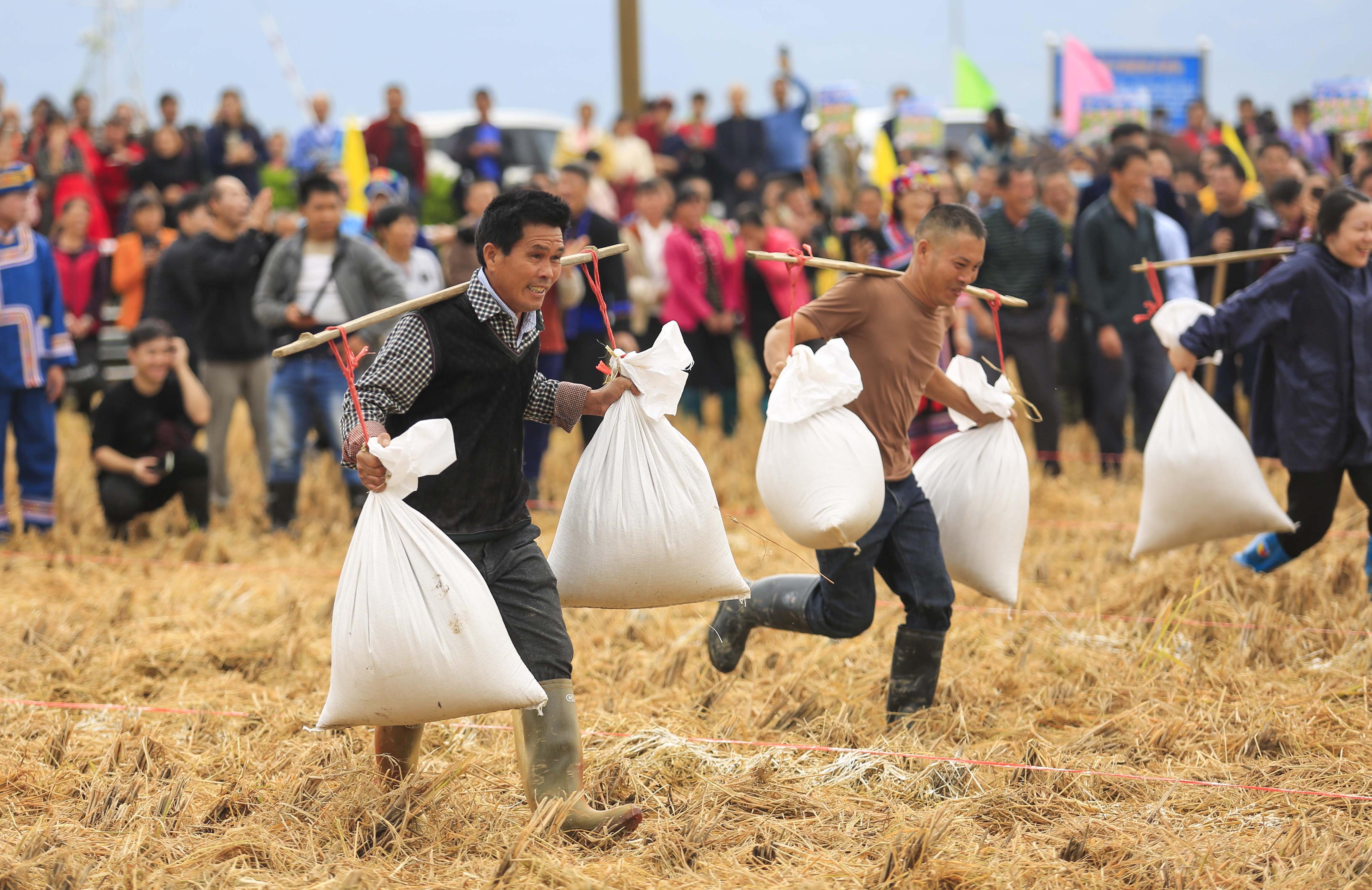 古砦仫佬族鄉(xiāng)大戶村舉辦豐收節(jié)挑擔子比賽 鄧克軼 攝