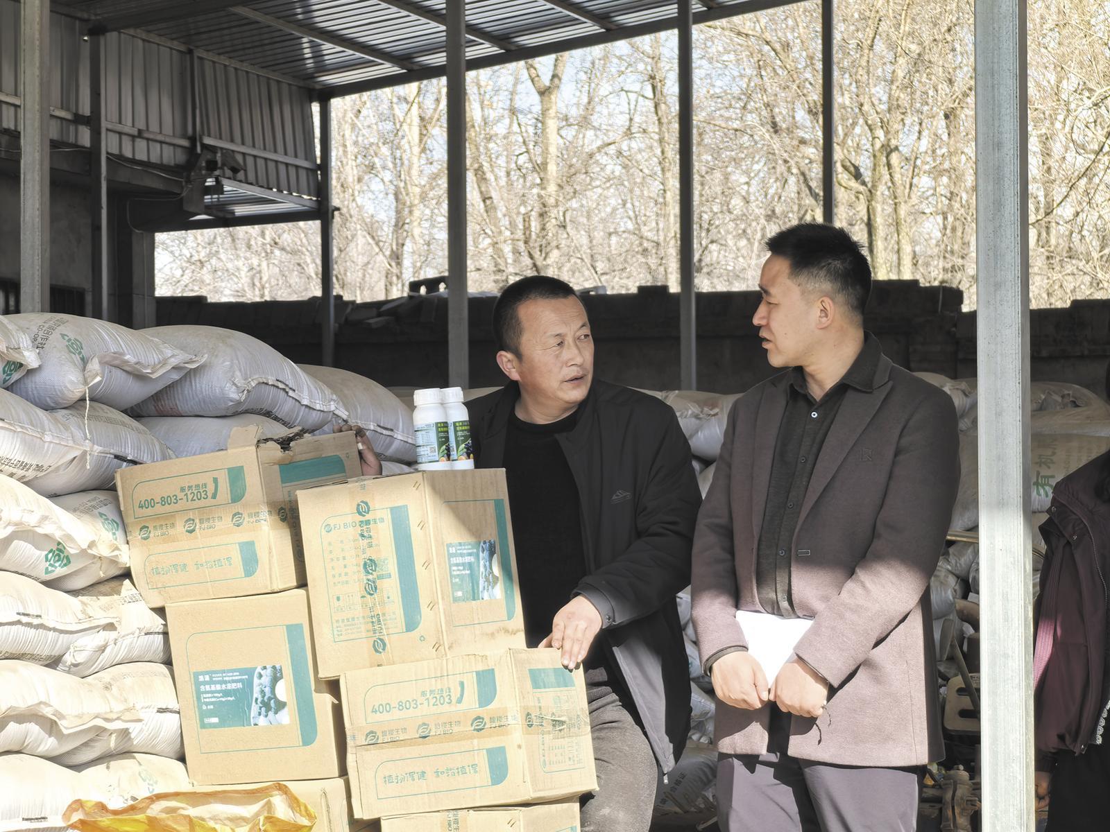 2月17日,在青海省海東市民和回族土族自治縣中川鄉(xiāng)光明村股份經(jīng)濟(jì)合作社內(nèi),復(fù)合肥、二銨、尿素等各類化肥整齊地碼放在庫房,院子里停放著幾輛青飼料收獲機(jī),中川鄉(xiāng)黨委副書記馬玉明翻開工作筆記,一邊宣講著強農(nóng)惠農(nóng)富農(nóng)政策,一邊和群眾拉家常。