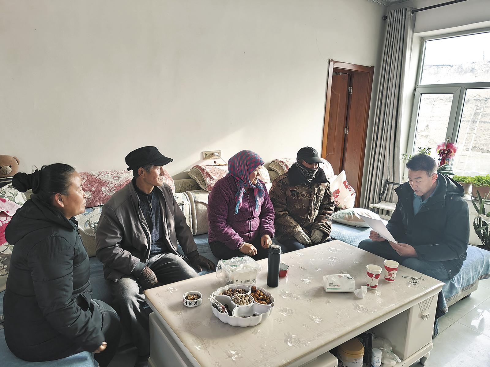 “鄉(xiāng)親們,都找地兒坐,今天我給大家?guī)砹瞬簧俸孟?!”胡家村駐村第一書記王浩手拿宣講文件,洪亮的聲音在巷道里響起。