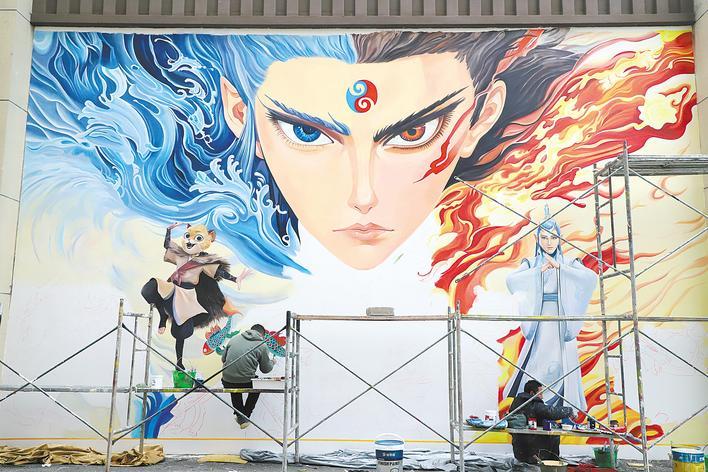 春節(jié)期間,隨著電影《哪吒2》上映,宜都當?shù)匾患夜菊业烬復(fù)ソ?,請他在一?0平方米的墻上畫“哪吒”,預(yù)算2萬元左右。為了在墻上畫好這些角色,龔?fù)ソ芄獠季謽?gòu)思就花了大半個月。