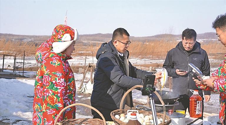 “各位老鐵們,看看這雞蛋黃,招人稀罕不,這都是村民自家小笨雞下的……”3月12日,在黑龍江省饒河縣大通河鄉(xiāng)鎮(zhèn)江村村民劉偉軍家的小院里,一群新農(nóng)人正在手機(jī)屏幕前介紹著當(dāng)?shù)靥厣r(nóng)產(chǎn)品,一旁的劉偉軍一邊看著銷售訂單的不斷刷屏,一邊高興得合不攏嘴。