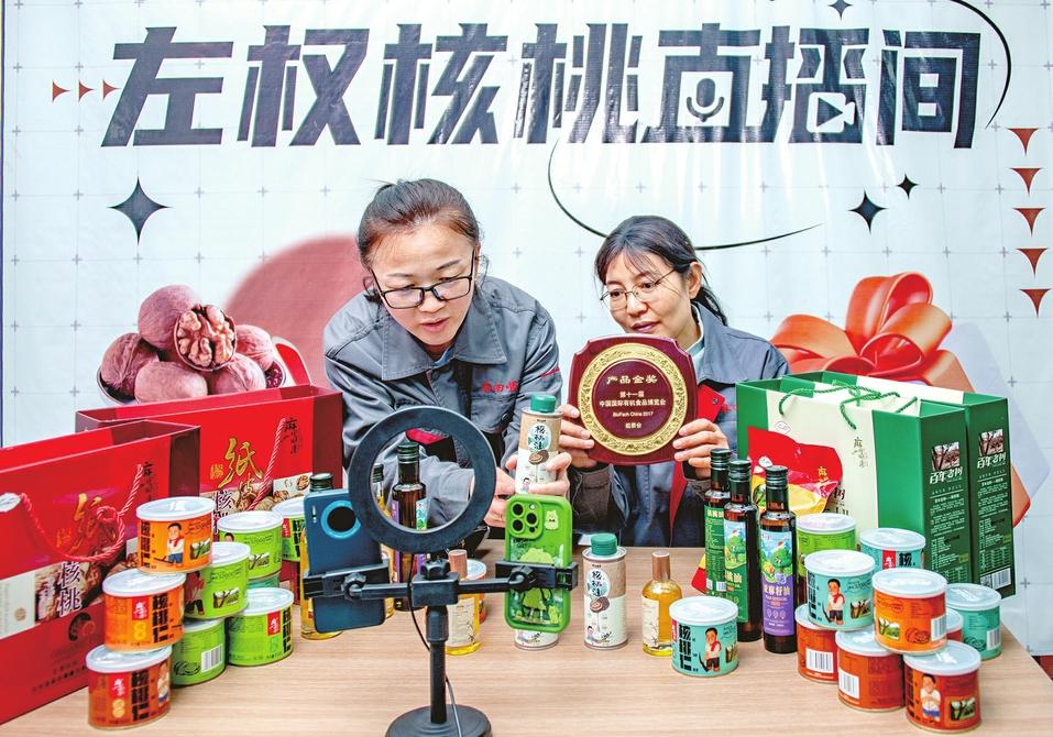 “要想心情好,多往左權(quán)跑,左權(quán)不光是陪伴你春夏秋冬的旅游勝地,也可以是你置辦山鄉(xiāng)好物的‘優(yōu)選庫(kù)’?!彪娚讨鞑ミ_(dá)人楊麗娜正對(duì)著鏡頭熱情介紹,從秀美鄉(xiāng)村到古法工藝再到美妙口感,傾情推薦左權(quán)綿核桃、太行小米、手工釀醋等“匠心農(nóng)品”,直播間熱度持續(xù)攀升。