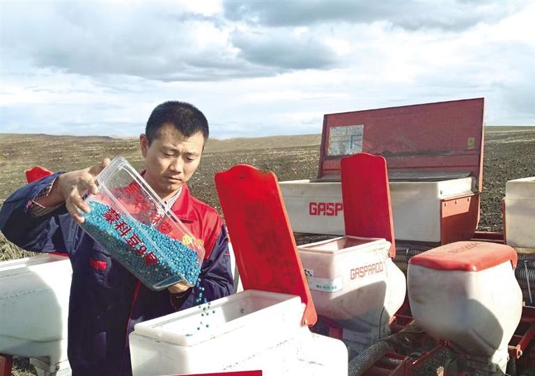 “全區(qū)農(nóng)村牧區(qū)青年致富帶頭人”李慶國在田間查看種子。