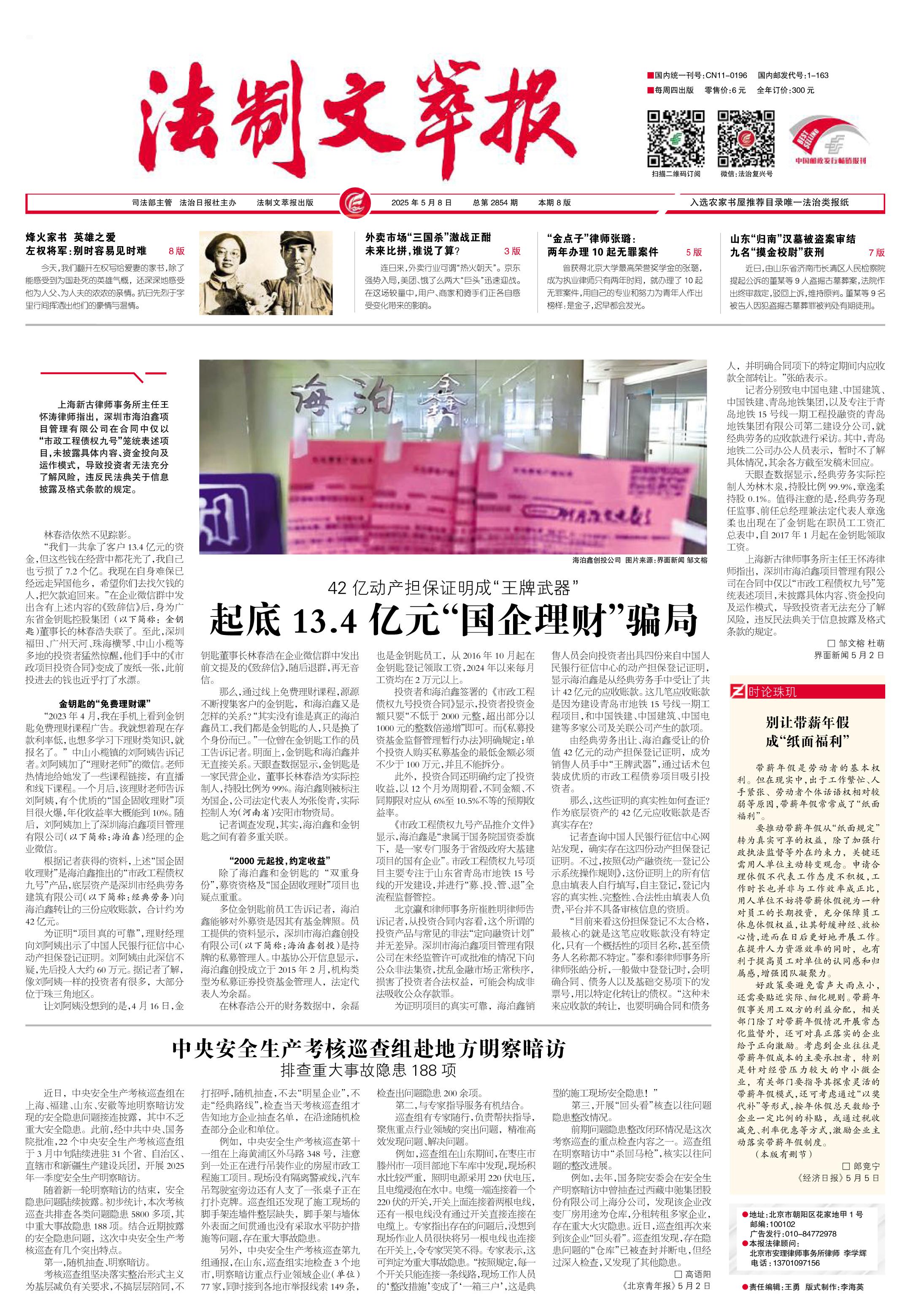 2025年5月8日《法制文萃報》總第2854期1版