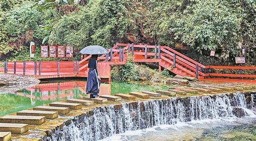 景區(qū)內(nèi)一條貫穿整個景區(qū)的紅色棧道格外引人注目。水錦順莊景區(qū)總監(jiān)助理韋炳佳介紹:“特意架高的棧道是為了避開植被使其不被破壞,采用環(huán)保木材建設,雖增加成本卻最大限度保護生態(tài)。”