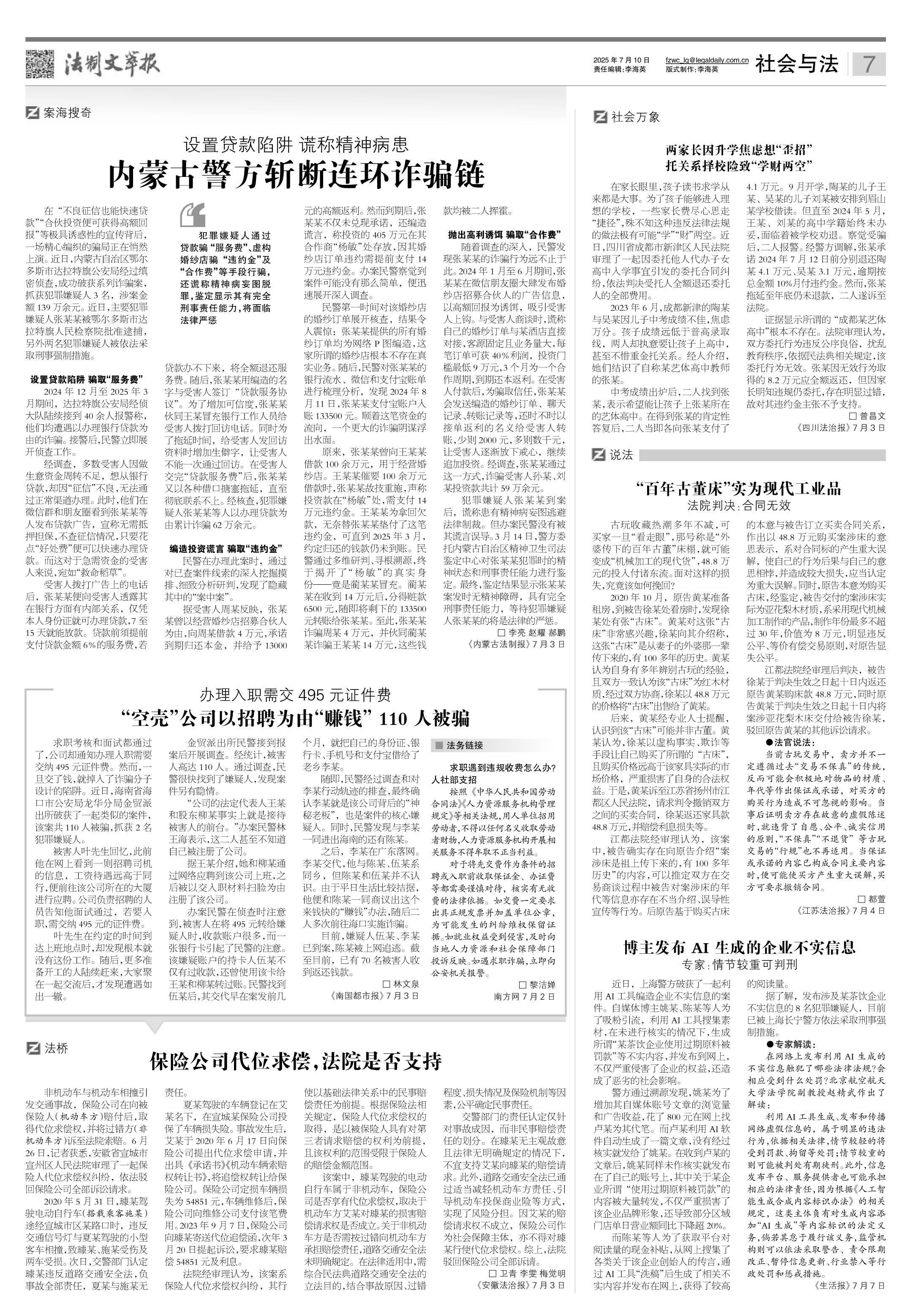 2025年7月10日《法制文萃報》總第2863期7版