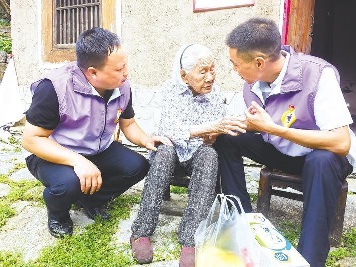 駐村工作隊(duì)員看望百歲老人。記者 戴輝 攝