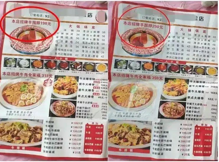 在曝光視頻中,該博主一行人通過對比實測發(fā)現(xiàn),該店針對本地人與外地游客使用“陰陽菜單”,同款“羊圍脖”菜品本地價198元,外地游客價達298元,價差100元;同時商家宣稱1600克的羊肉,實際兩桌分別僅為1174.5克和1204克,缺斤短兩問題突出。面對質疑,餐廳負責人竟辯解稱:“咱們當?shù)厝司褪钱數(shù)貎r,外地人有旅行社進行溝通?!边@種地域歧視性定價更引發(fā)了大眾不滿。