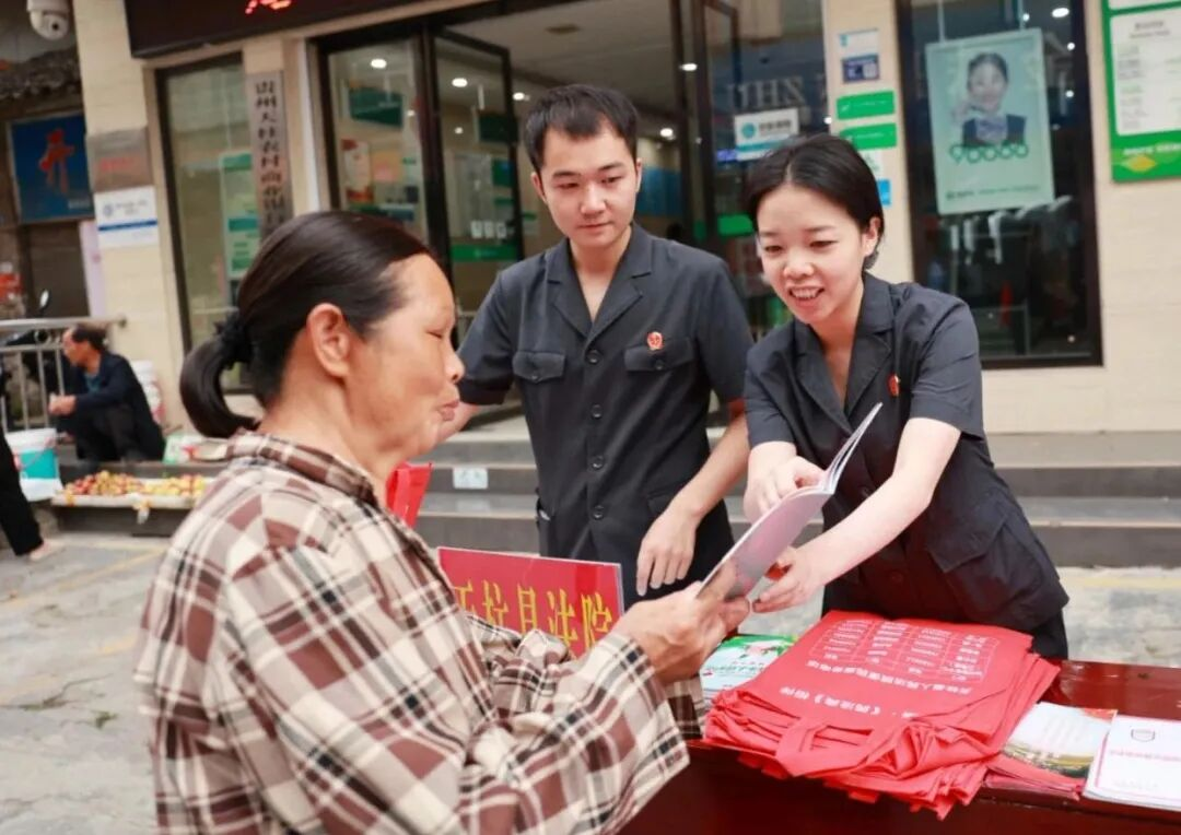 針對(duì)少數(shù)民族群眾語(yǔ)言習(xí)慣,運(yùn)用“侗語(yǔ)+漢語(yǔ)”“苗語(yǔ)+漢語(yǔ)”雙語(yǔ)普法模式。精心挑選既懂法律專業(yè)知識(shí)又通曉少數(shù)民族語(yǔ)言的干警組建雙語(yǔ)普法團(tuán)隊(duì),他們深入高釀鎮(zhèn)、石洞鎮(zhèn)、地湖鄉(xiāng)等少數(shù)民族聚居鄉(xiāng)鎮(zhèn)。利用趕集日人流集中的特點(diǎn),用“聽得懂、記得牢、用得上”的鄉(xiāng)音土語(yǔ)講解《中華人民共和國(guó)民法典》《中華人民共和國(guó)反有組織犯罪法》等法律法規(guī)。講解過(guò)程中,結(jié)合當(dāng)?shù)爻R姷纳搅滞恋丶m紛、婚姻家庭矛盾等典型案例,把法律條文轉(zhuǎn)化為群眾熟悉的“身邊事”,讓各族群眾在熟悉的語(yǔ)境中理解法律內(nèi)涵、認(rèn)同法治精神,讓法治宣傳真正走進(jìn)群眾心里。