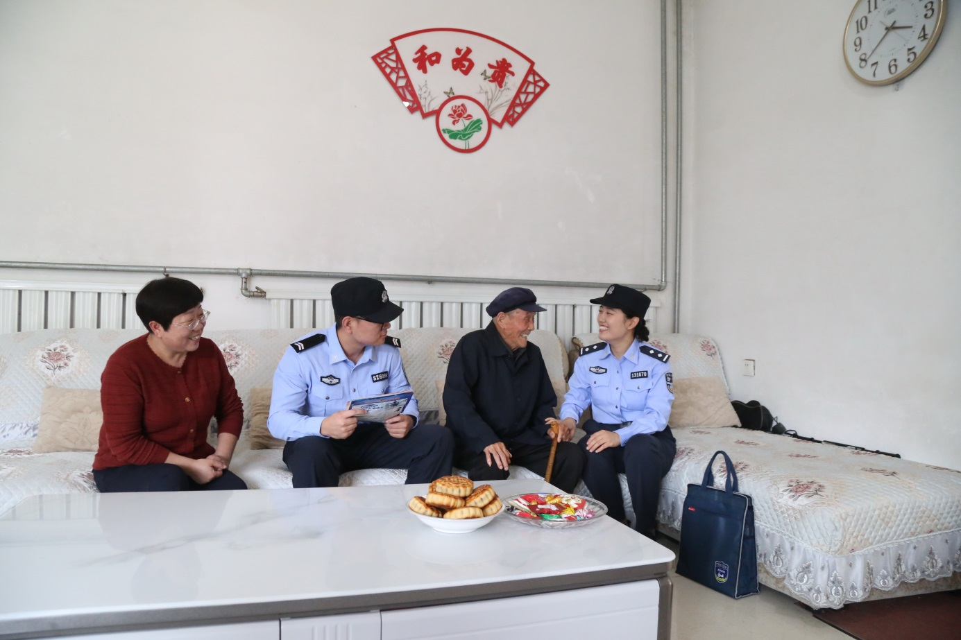 她們是百姓身邊的貼心人。國(guó)慶期間,民警們紛紛走近百姓、融入百姓,將祝福和安全送上門。10月1日下午,社區(qū)民警來(lái)到九旬老人屈爺爺家中,熱活著嘮起家常?!白罱眢w怎么樣”“是否有什么難事需要解決”……民警一邊耐心詢問(wèn),一邊認(rèn)真記錄,老人臉上洋溢著開心的笑容。一聲聲親切的節(jié)日問(wèn)候,一次次耐心的安全檢查,讓警民關(guān)系在節(jié)日的互動(dòng)中愈發(fā)溫暖。