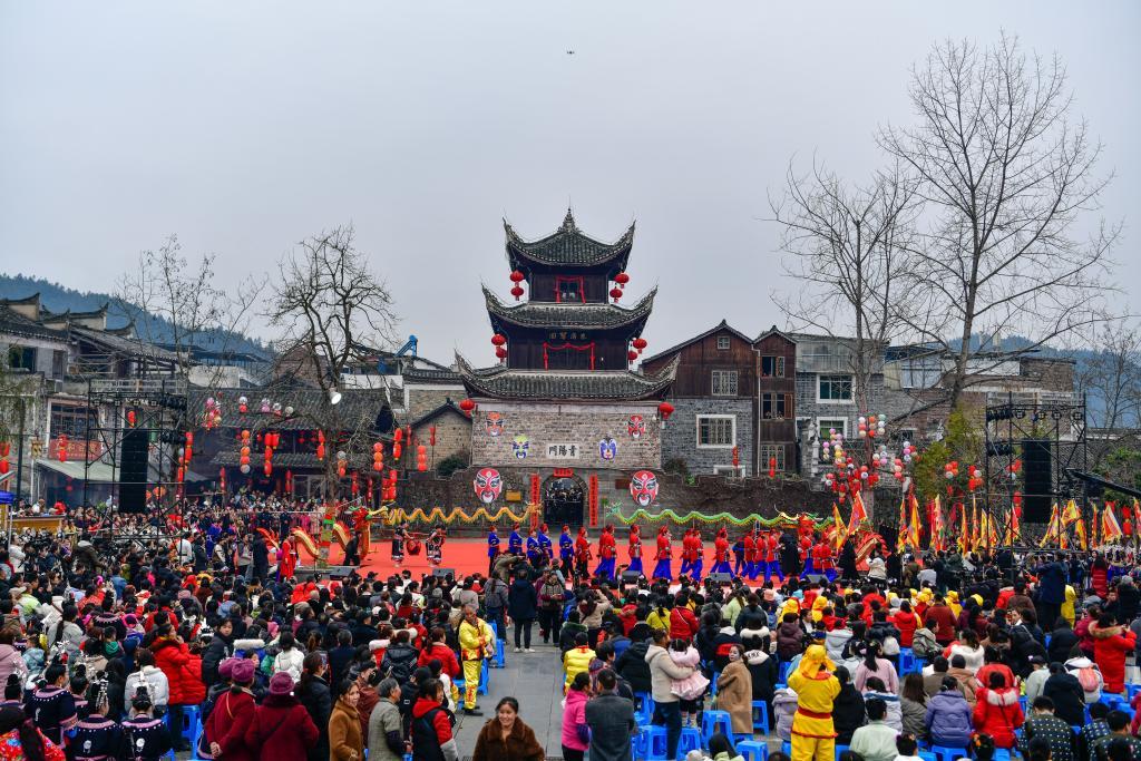 2月11日拍攝的貴州錦屏隆里“村晚遇元宵·來隆里玩花臉龍”活動現(xiàn)場。新華社記者 楊文斌 攝