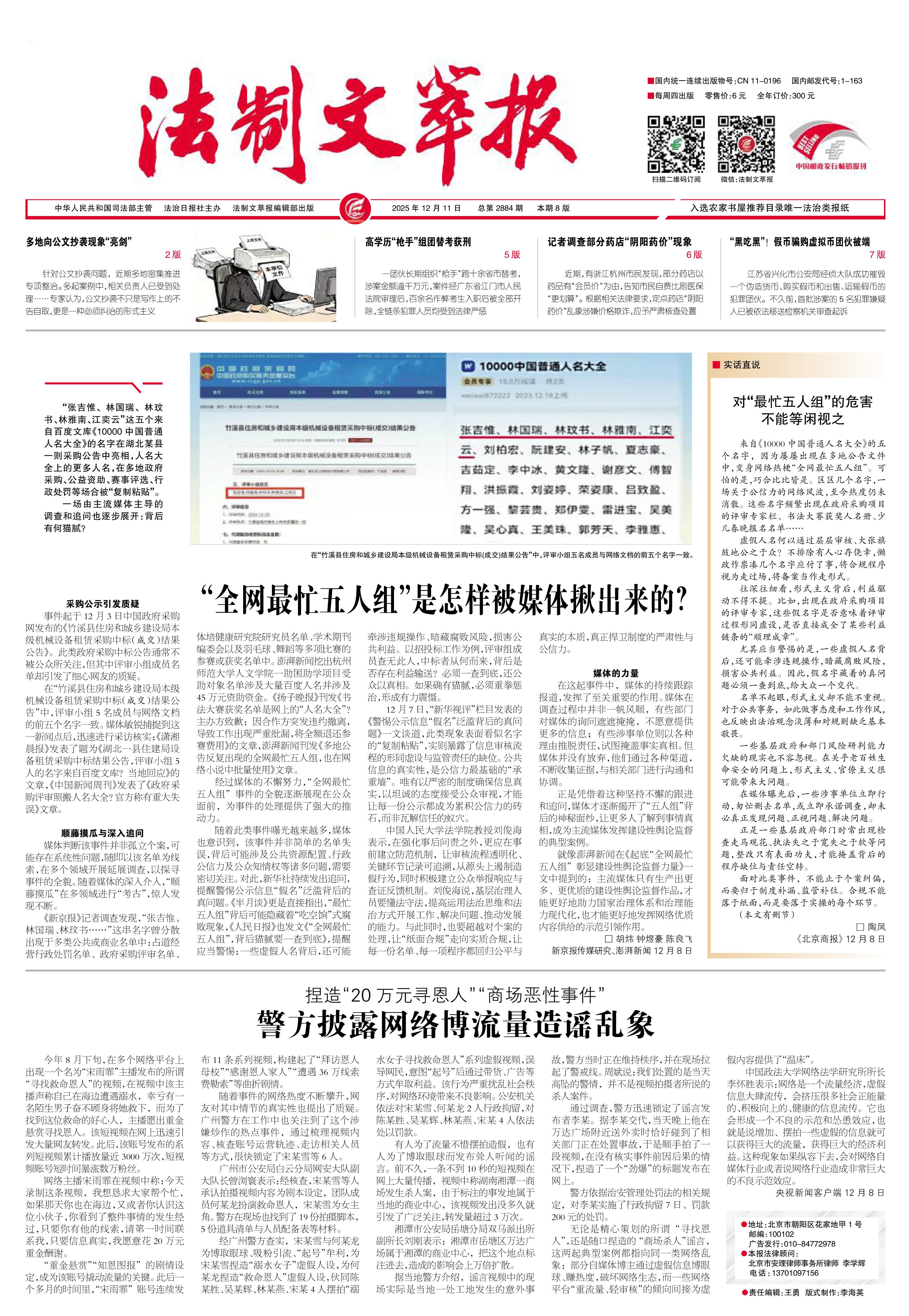 2025年12月11日《法制文萃報(bào)》總第2884期1版