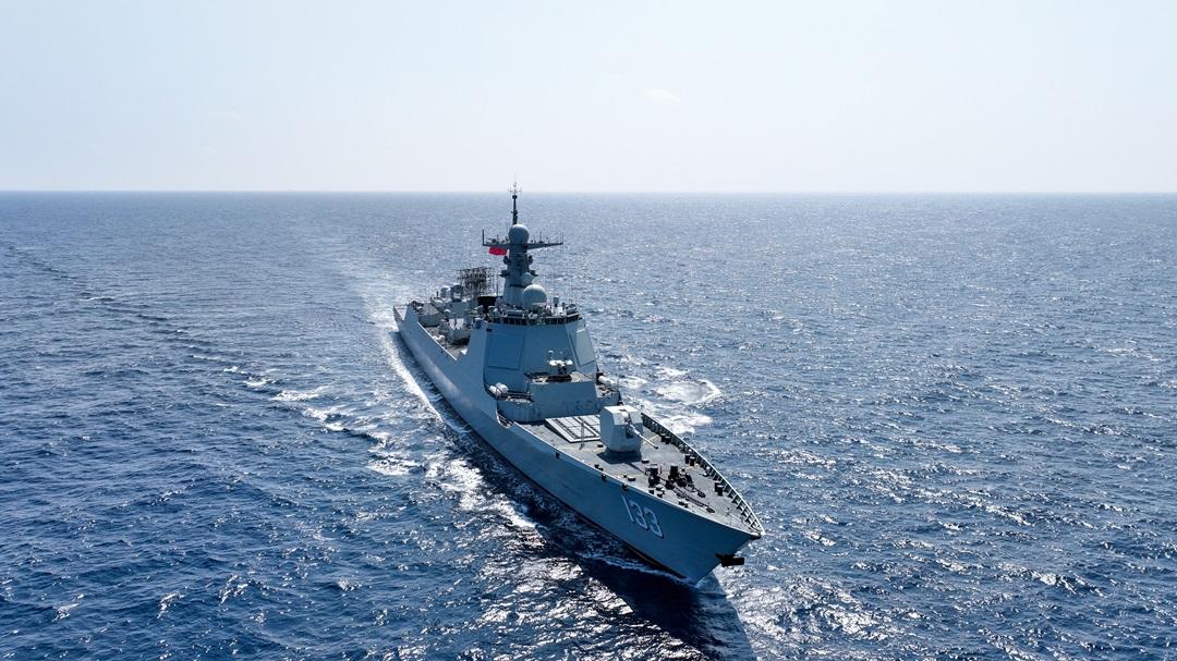 圖為包頭艦航行在亞丁灣大洋上。熊勤鑫 攝