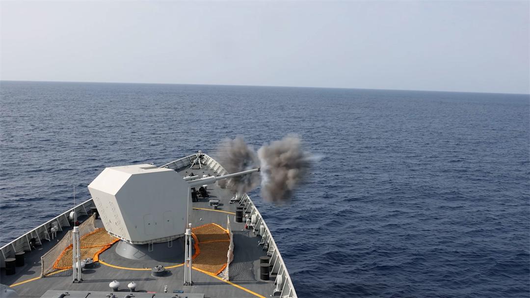 2025年2月,包頭艦應(yīng)邀參加“和平-2025”多國海上聯(lián)合演習(xí),壓軸科目是主炮對海射擊。
