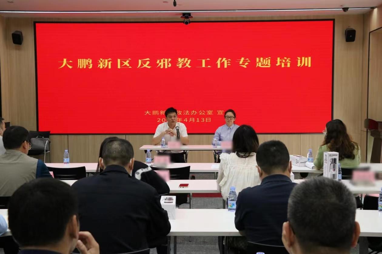培訓(xùn)中,深圳市委政法委反邪教專家以“立足大局 把握大局 提高能力”為主題,分析反邪教工作領(lǐng)域所面臨的風(fēng)險(xiǎn)和挑戰(zhàn),并結(jié)合典型案例,詳細(xì)講解邪教組織的特征、種類、危害等基礎(chǔ)知識(shí),重點(diǎn)講解防范邪教侵襲的方法和舉措。反邪教專家還指出,在互聯(lián)網(wǎng)時(shí)代,防邪基層干部要結(jié)合新區(qū)實(shí)際情況,堅(jiān)持網(wǎng)上、線下“兩手抓”,加大網(wǎng)絡(luò)涉邪排查力度。