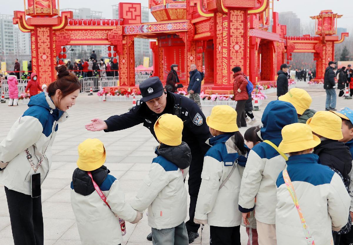 2月26日,山東省煙臺(tái)市公安局萊山分局民輔警在慶新春民間秧歌展演暨非遺大集活動(dòng)現(xiàn)場(chǎng)進(jìn)行服務(wù)保障工作。