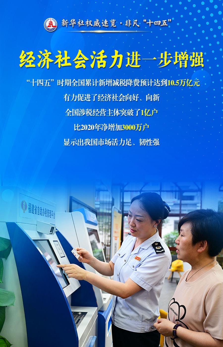 財(cái)力基礎(chǔ)進(jìn)一步壯大、經(jīng)濟(jì)社會活力進(jìn)一步增強(qiáng)、市場營商環(huán)境進(jìn)一步優(yōu)化……28日舉行的“高質(zhì)量完成‘十四五’規(guī)劃”新聞發(fā)布會上,國家稅務(wù)總局局長胡靜林說,“十四五”時(shí)期,我國稅收改革發(fā)展取得積極成果。通過這組海報(bào),一起來看看。