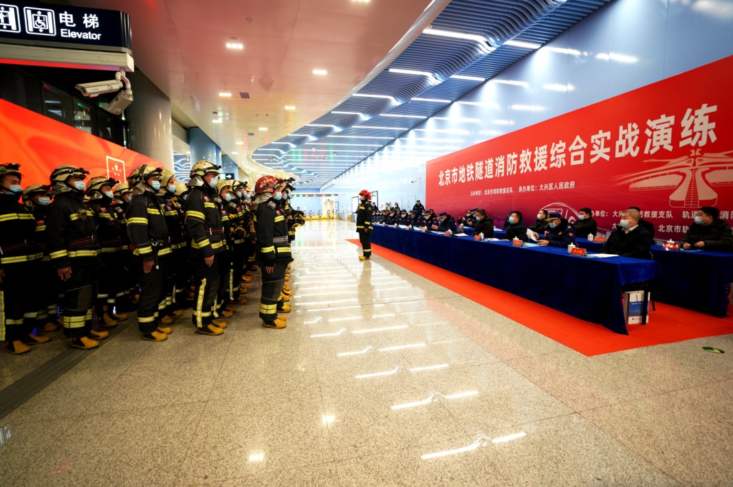 為全力做好2022年春運服務(wù)保障工作,防范化解重大安全風險,聚焦“全災(zāi)種、大應(yīng)急”救援需要和地鐵隧道火災(zāi)滅火救援處置能力。1月21日凌晨,北京市在北京地鐵大興機場線大興新城地鐵站組織開展全要素地鐵隧道火災(zāi)滅火救援綜合實戰(zhàn)演練。演練模擬一列由大興新城地鐵站開往草橋站的地鐵因動力電機故障導(dǎo)致電氣線路起火燃燒,多節(jié)車廂起火,列車、隧道以及車站內(nèi)大量人員被困的情形。北京市消防救援總隊先后調(diào)集10個單位、52輛消防車、248名消防救援人員,以及市軌道運營管理公司、公安、交通、環(huán)衛(wèi)、醫(yī)療、氣象、微型消防站等區(qū)級社會聯(lián)動力量200余人參演。