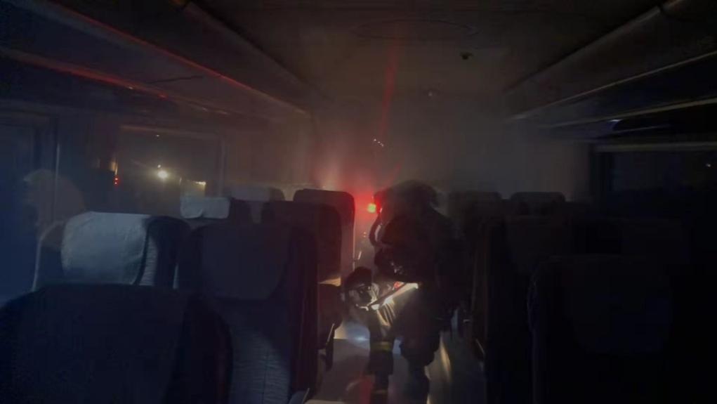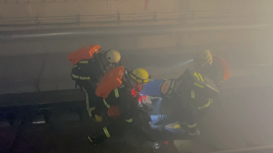 1月21日1時,演練正式開始。一列由大興新城地鐵站開往草橋站的地鐵因動力電機故障導(dǎo)致電氣線路起火燃燒,高溫煙氣迅速向車廂內(nèi)蔓延,造成大量乘客被困。發(fā)生火災(zāi)后,大興新城地鐵站值班人員確認事故后,立即啟動應(yīng)急處置預(yù)案,停運就近線路列車運行,并撥打119報警。地鐵工作人員利用應(yīng)急廣播向乘客播報情況穩(wěn)定乘客情緒,車站工作人員啟動應(yīng)急處置,地鐵微型消防站趕赴站臺,疏散站臺乘客,啟動固定消防設(shè)施。119指揮中心接警后立即啟動《北京市地鐵火災(zāi)事故滅火救援預(yù)案》,調(diào)集專業(yè)力量及社會聯(lián)動單位到場協(xié)同處置。消防隊站到場后成立偵查組、搜救組、滅火組、照明組、排煙組、保障組等多個小組,采取“接力疏散、陣地堵截、控煙降溫”等技戰(zhàn)術(shù)措施;搜救組在水槍掩護下進入內(nèi)部偵察火情并優(yōu)先搜救被困人員,啟動接力疏散戰(zhàn)術(shù);滅火組采取“排煙散熱、開辟通道、雙向搜救、分段作業(yè)”等技戰(zhàn)術(shù)措施,利用滅火機器人、干式泡沫對起火地鐵車輛進行滅火處置;轄區(qū)應(yīng)急、公安、交通、環(huán)衛(wèi)、氣象、醫(yī)療等聯(lián)動力量參與行動,提供外圍警戒、交通疏導(dǎo)、醫(yī)療保障等工作。1時35分,明火被撲滅,所有人員全部安全救出,人員得到妥善救助,綜合演練圓滿結(jié)束。
