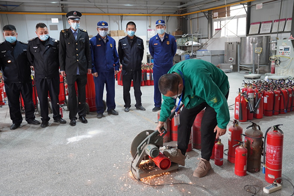 3月15日上午,北京市大興區(qū)消防救援支隊聯(lián)合區(qū)市場監(jiān)督管理局等職能部門,開展了“ 3·15 ”假冒偽劣消防產(chǎn)品集中銷毀活動。工作人員對100余具不合格的滅火器以及達到使用年限需報廢的滅火器進行切割銷毀,防止不法商販回收利用。