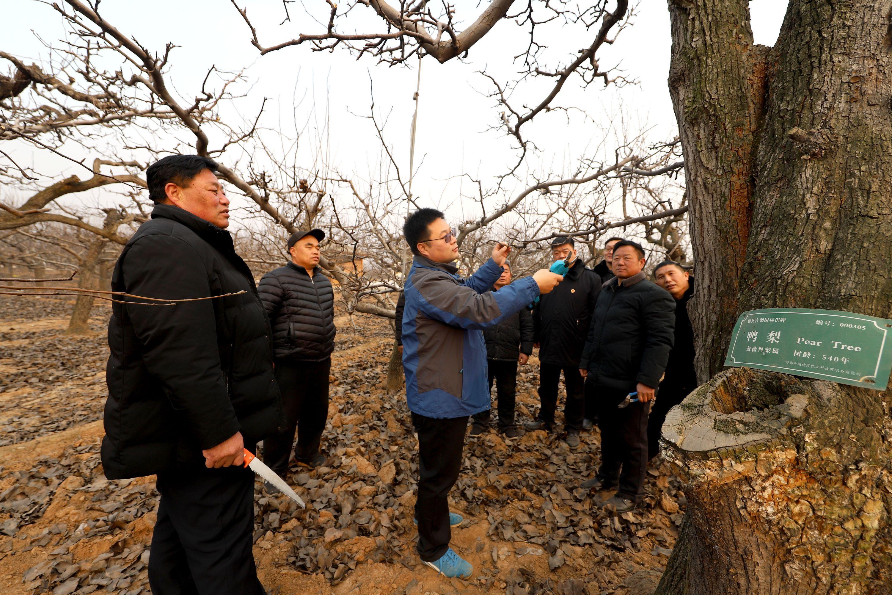 1月4日,河北省魏縣人民檢察院公益訴訟檢察官邀請?jiān)摽h林果服務(wù)中心果樹專家來到東南溫村梨園,指導(dǎo)梨農(nóng)對古梨樹進(jìn)行冬季剪枝整枝管理,為明年古梨樹豐產(chǎn)、梨農(nóng)增收做好準(zhǔn)備。圖為專家向梨農(nóng)講解古梨樹的修剪要求和技巧。