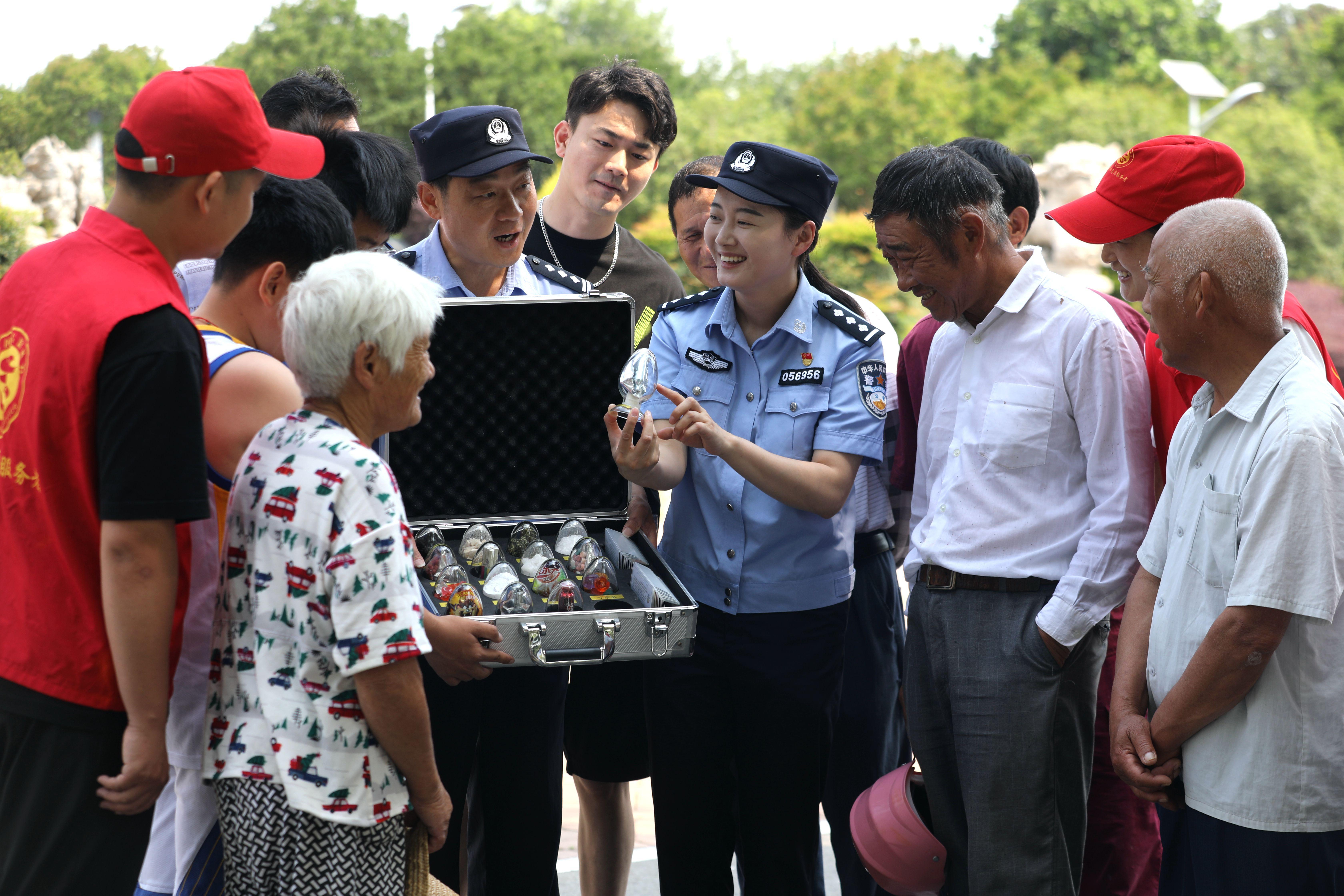 今年6月是我國第13個(gè)“全民禁毒宣傳月”,6月14日,安徽省舒城縣公安局柏林派出所民警走進(jìn)轄區(qū)秦橋村開展禁毒宣傳。民警通過展示仿真毒品模型、面對面講解禁毒知識,引導(dǎo)群眾增強(qiáng)識毒拒毒意識。圖為民警利用仿真毒品模型向群眾講解禁毒知識。