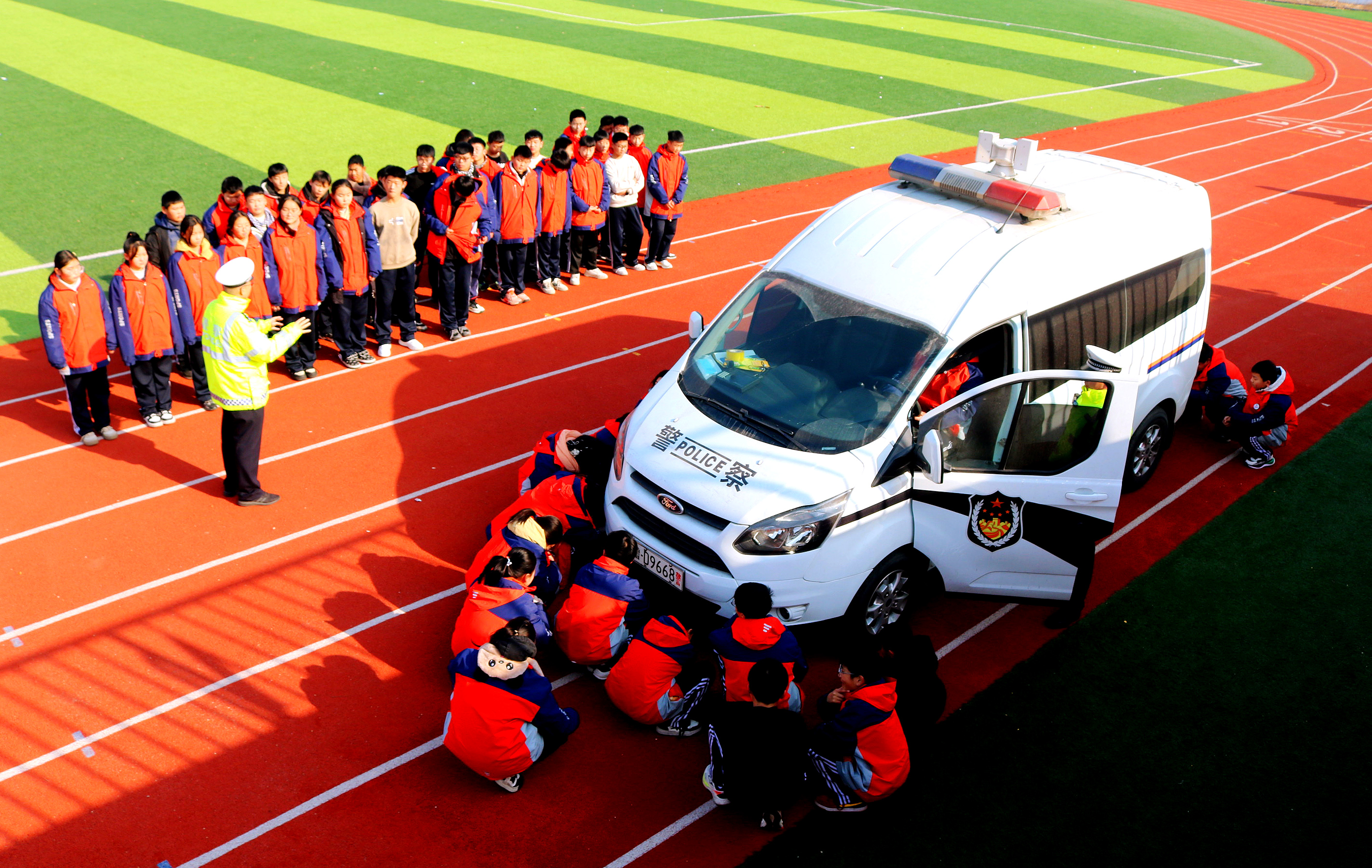 1月5日,山東省滕州市公安局交警大隊(duì)民警走進(jìn)轄區(qū)洪緒鎮(zhèn)龍莊小學(xué),通過(guò)情景演示、體驗(yàn)互動(dòng)等方式,向?qū)W生們講解車(chē)內(nèi)逃生方法、遠(yuǎn)離車(chē)輛盲區(qū)、安全文明出行等交通安全知識(shí),提高學(xué)生安全乘車(chē)意識(shí)。圖為民警在向?qū)W生們講解交通法規(guī)和交通安全知識(shí)。