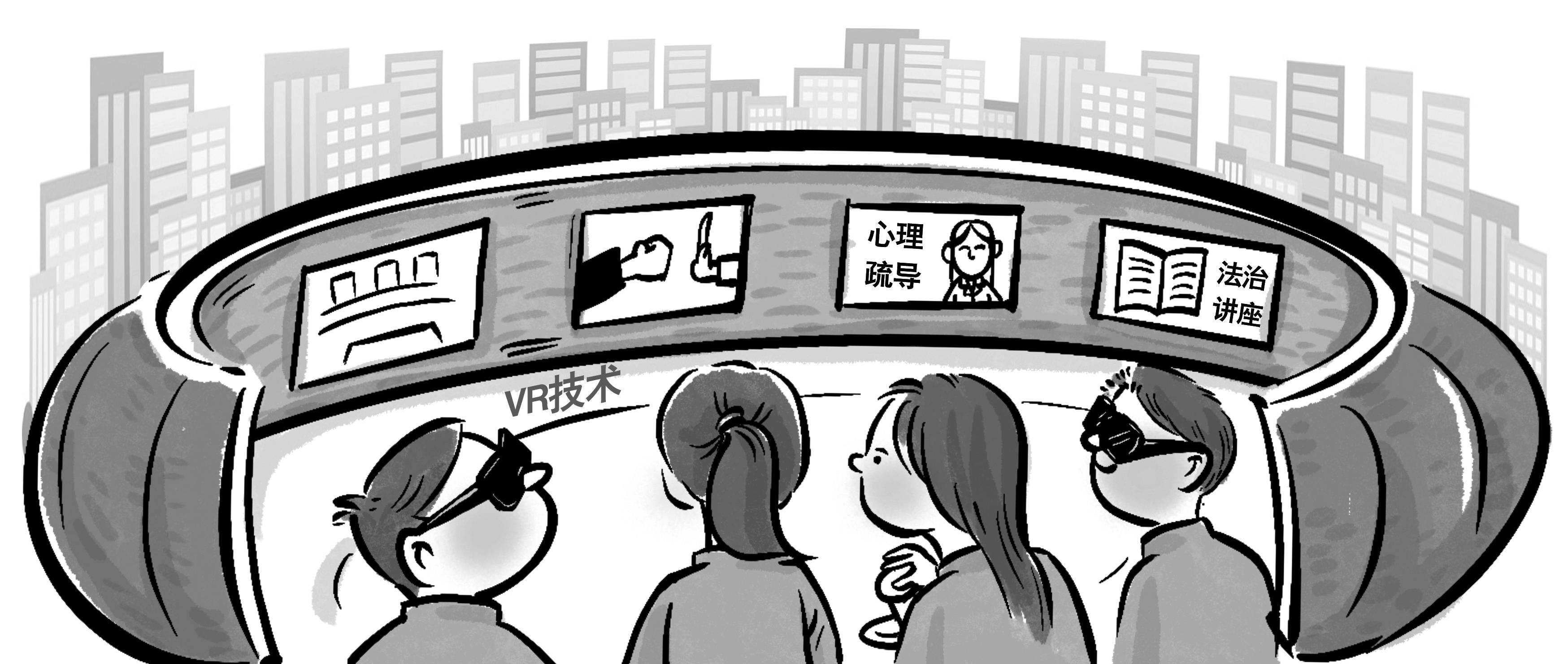 《法治日?qǐng)?bào)》記者看到,《VR防校園欺凌》借助VR頭盔、手柄等配件,對(duì)校園暴力情景劇的發(fā)展路徑進(jìn)行可視化選擇,讓青少年深度體驗(yàn)面對(duì)校園暴力時(shí)不同選擇帶來的后果。而在“小桔燈”青少年法治教育基地走廊,以漫畫形式講述青少年違法犯罪的原因、不良行為容易引起違法犯罪、未成年人刑事責(zé)任和民事責(zé)任年齡等法律知識(shí),讓青少年學(xué)習(xí)了解相關(guān)法律知識(shí)。在心理咨詢室,設(shè)有心理測(cè)試自助管理系統(tǒng)以及沙盤游戲,青少年可以在心理咨詢師的指導(dǎo)下開展心理測(cè)評(píng),解決在學(xué)習(xí)和生活中遇到的心理困擾和問題。社區(qū)矯正觀護(hù)中心則主要以樹立積極陽光的心態(tài)為主題,讓青少年在感受法律威嚴(yán)的同時(shí),積極開展矯治教育,讓問題青少年順利回歸社會(huì)。